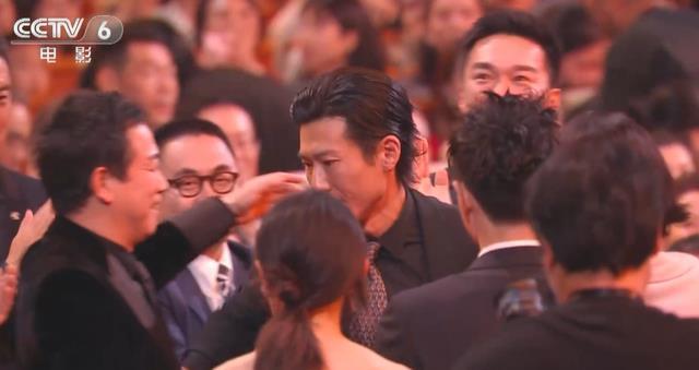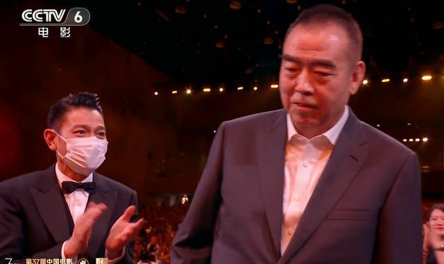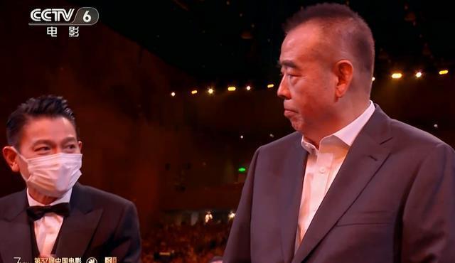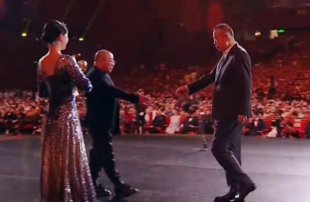 上台后,陈凯歌更是闲庭信步。 他面无激情上台,不慌不忙地来与受奖嘉宾捏手。