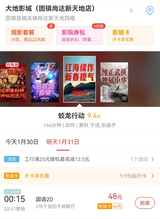 《蛟龙行动》不仅是排片少的问题,况兼影院对这部电影的排片,还额外“阴间”,一天就一场,要么是额外早: