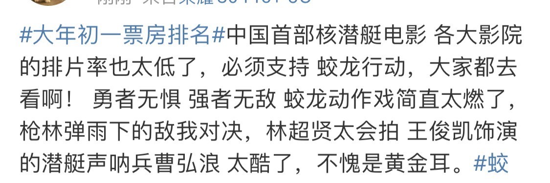 望望我这种二刷的不雅众,再望望那些自觉替《蛟龙行动》撕排片的不雅众!诸位院线司理,它真实是一部值得多排,况兼也一定会卖钱的电影!