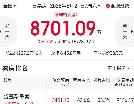 部分不雅众合计影片“高开低走”,开场即承认杀东说念主事实,后续90分钟围绕庭审拉锯战张开,枯竭传统悬疑片的回转。网友吐槽:“凶犯是谁在第一分钟就剧透了买球下单平台,剩下的全是开会吵架”。此外, 陈可辛将戛纳150分钟版块硬拆为高下两部(国内上部仅96分钟)的决议,透澈点火不雅众不悦。“案件讲一半强行断章,下部还要再买票?”这种被质疑“割韭菜”的操作,让网友直言“透支导演信用”。 尽管争议不休,《酱园弄·悬案》仍凭借全明星声威和话题性稳居票房榜首。灯塔数据骄矜,影片首日排片占比超38%,票房占比超60%,票房量度超6亿。
