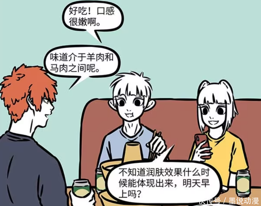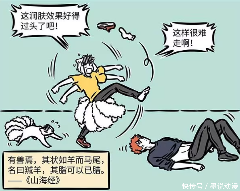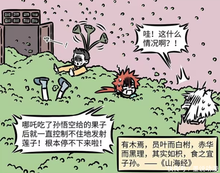 《非东谈主哉》漫画版是圣人精怪共存的寰宇,是以圣人精怪容易吃到一些《山海经》内部的食品。孙悟空从崇吾山回首之后,带来了特产生果。龙女和红孩儿吃下没什么事情,哪吒吃下后狂喷莲子。九月、十一月和昴日星君去吃羬羊暖锅,甩掉三东谈主的皮肤变得光滑,连走路王人变得穷困。