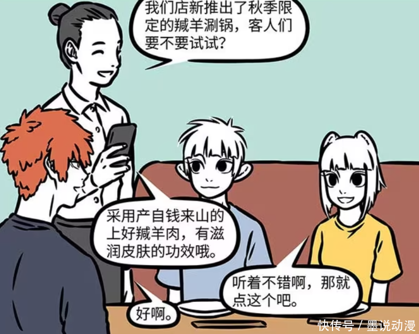 九月、十一月和昴日星君贵重约聚,这一次是去暖锅店吃新品暖锅。如故《山海经》上头的珍奇异兽,这一次是吃羬羊。处事员让九月他们尝试一下,这是来自钱来山的上好羬羊肉,吃下去之后有滋养皮肤的作用。九月听到功效之后,就思试一试这羬羊暖锅。