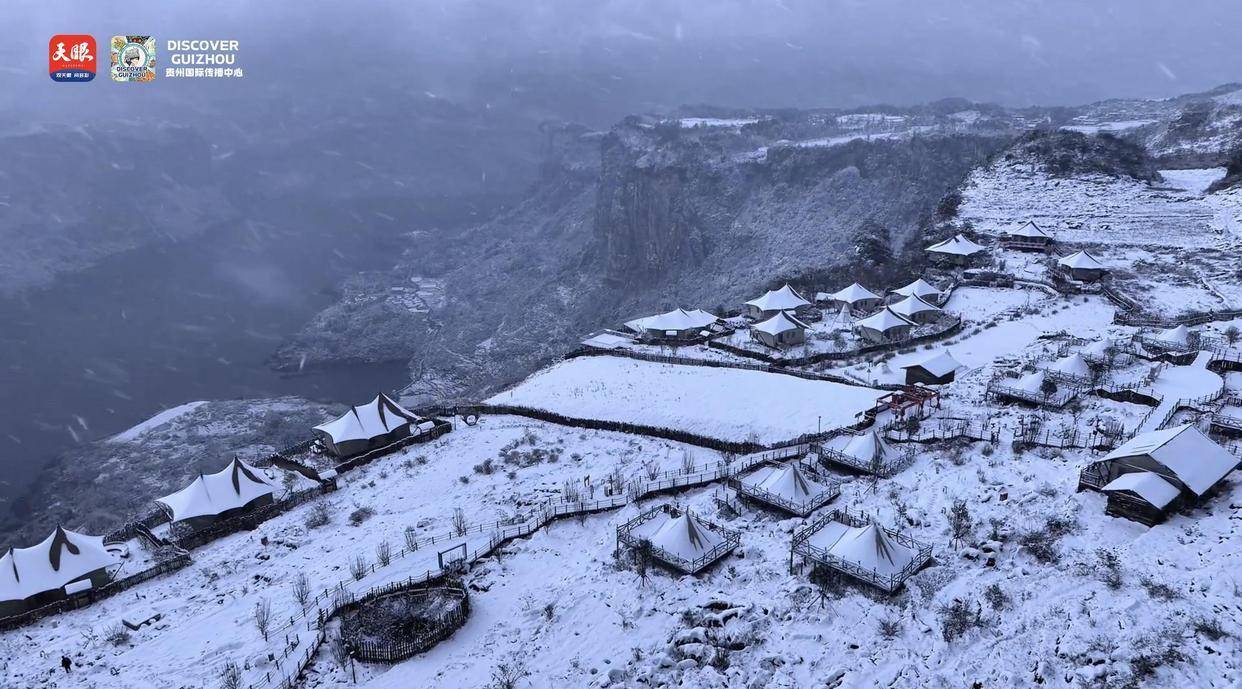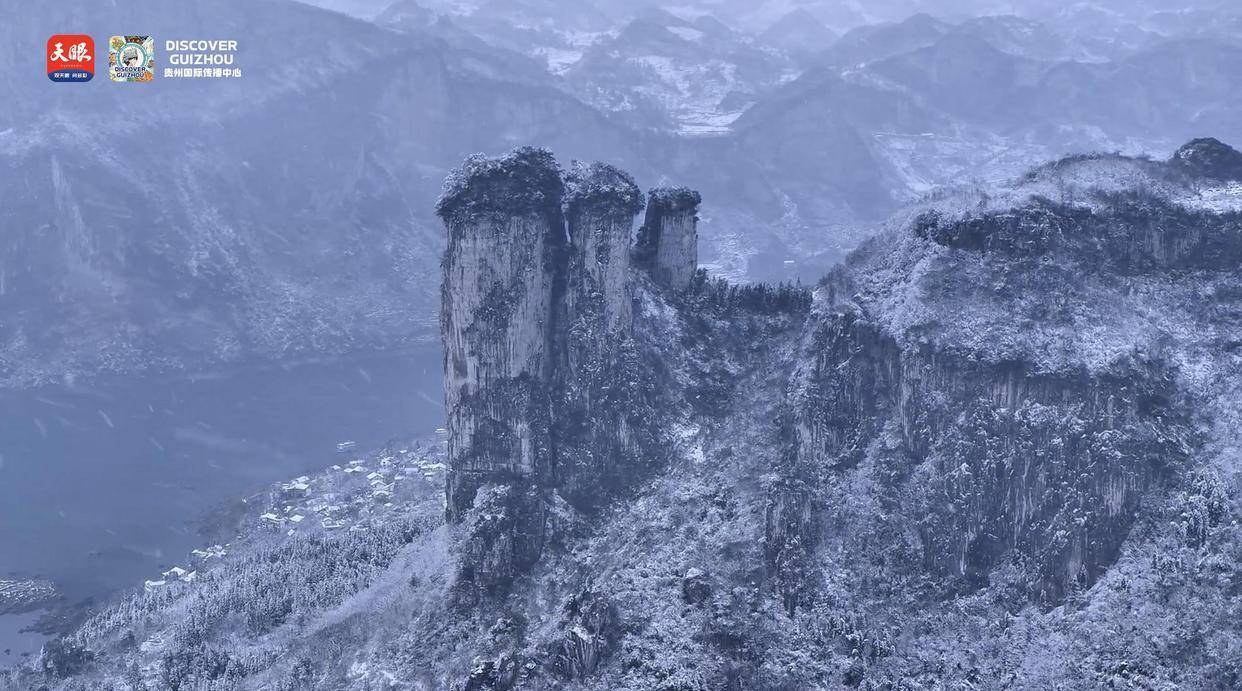 As snowflakes gently settle on the rooftops of Huawu Village in Qianxi, at the entrance of Zhijin Cave (UNESCO World Geopark), and on the branches of trees at Jiudongtian in Dafang, everything becomes magical—as if instantly bringing one into "The World of Frozen".