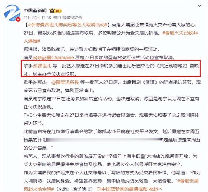 比如容祖儿在香港迪士尼乐土的花车行为,也仍是细目取消。