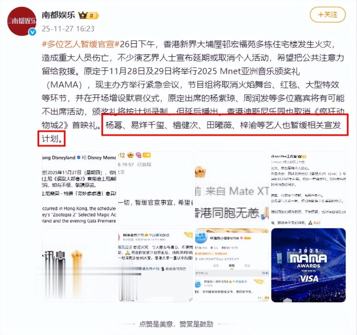 而除了MAMA以外,其他的文娱行为也纷纷暂缓。