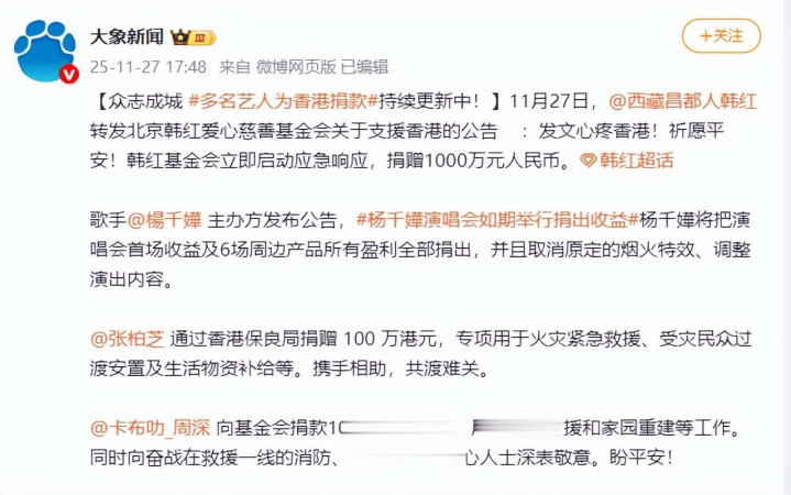 11月27日,杨千嬅责任室发布公告,向大家传递了他们深深的歉意。