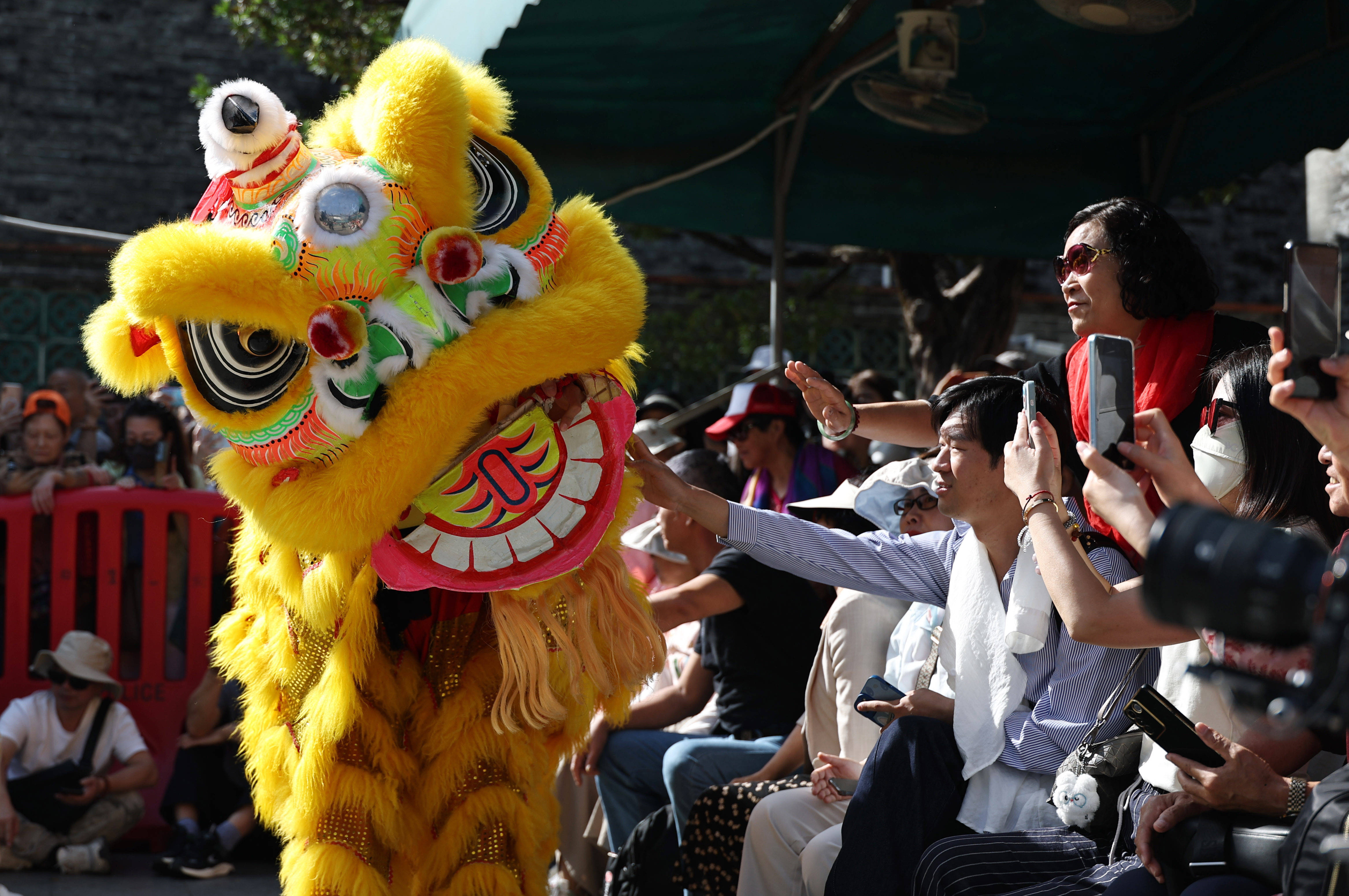醒狮与旅客互动。新华社记者 王鹏 摄在大湾区