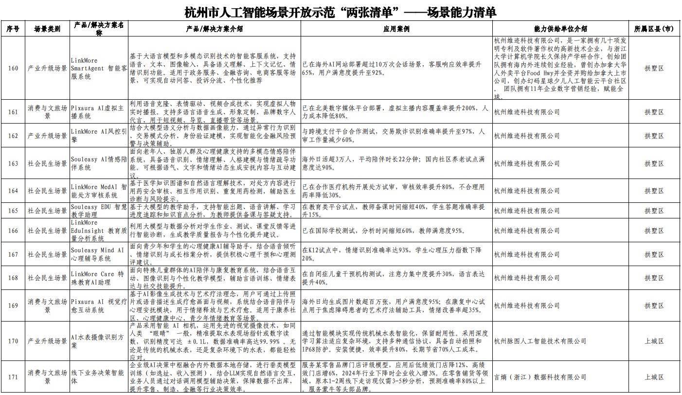 不仅“给资金”,还“给场景”。由杭州市发改委发布的新一批杭州AI+场景“两张清单”——292项场景契机清单和362项场景材干清单,遮蔽了城市治理、社会民生、产业升级三大中枢场景,充分体现了杭州“饭喂到嘴边”的营商作风。